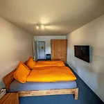 El alojamiento no solo ofrece servicio de tetera/cafetera, sino también una cocina completa con una nevera y un horno. La estación de teleférico Davos Platz está a unos 5 minutos en coche.